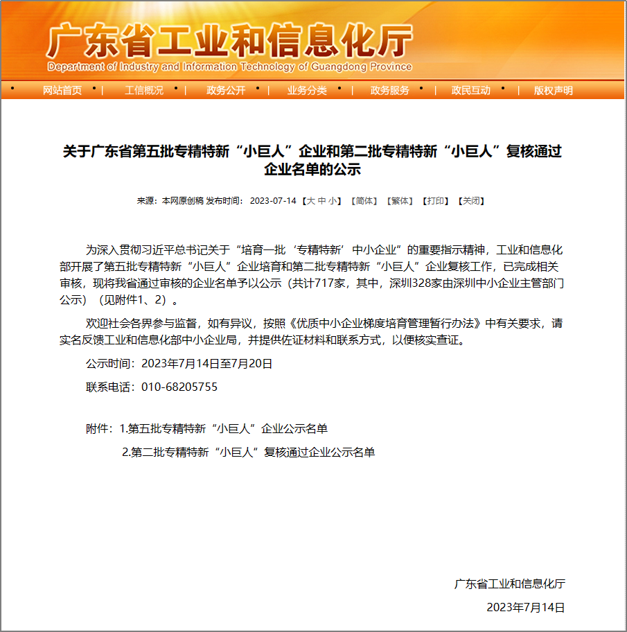 克日,,,,,,广东省工业和信息化厅公示了第五批国家专精特新“小巨人”企业名单,,,,,,mostbet(中国)有限公司位列其中,,,,,,乐成入选。。。。。。